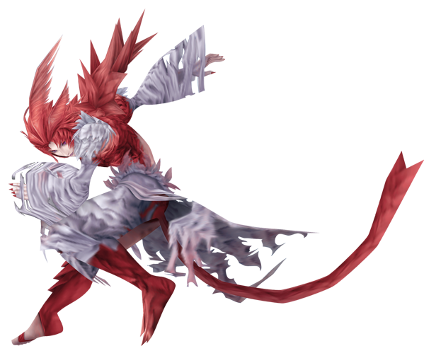 If Zack has not lost his light he'll see burning rings covered in countless eyes and scarlet wings spinning around a flaming core. If he has lot his light, he'll see a pale young man with red feathers and a tail.]